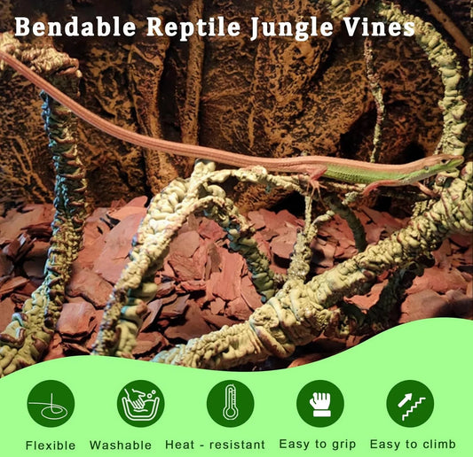 Reptile Jungle Vines Flexible Bend-A-Branch, 3.6Ft Reptile Climbing Branches, Chameleon Flexible Vine Decor,Terrarium Plants Decoration Accessories for Lizard Gecko Frog Snake